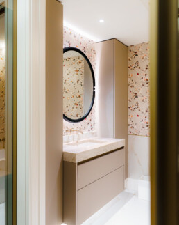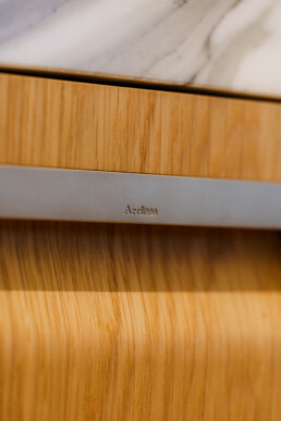 In the bathroom, Arclinea’s custom vanity brings the same design philosophy to a more intimate space. Streamlined forms, refined finishes, and intelligent storage transform daily routines into moments of understated modern living.